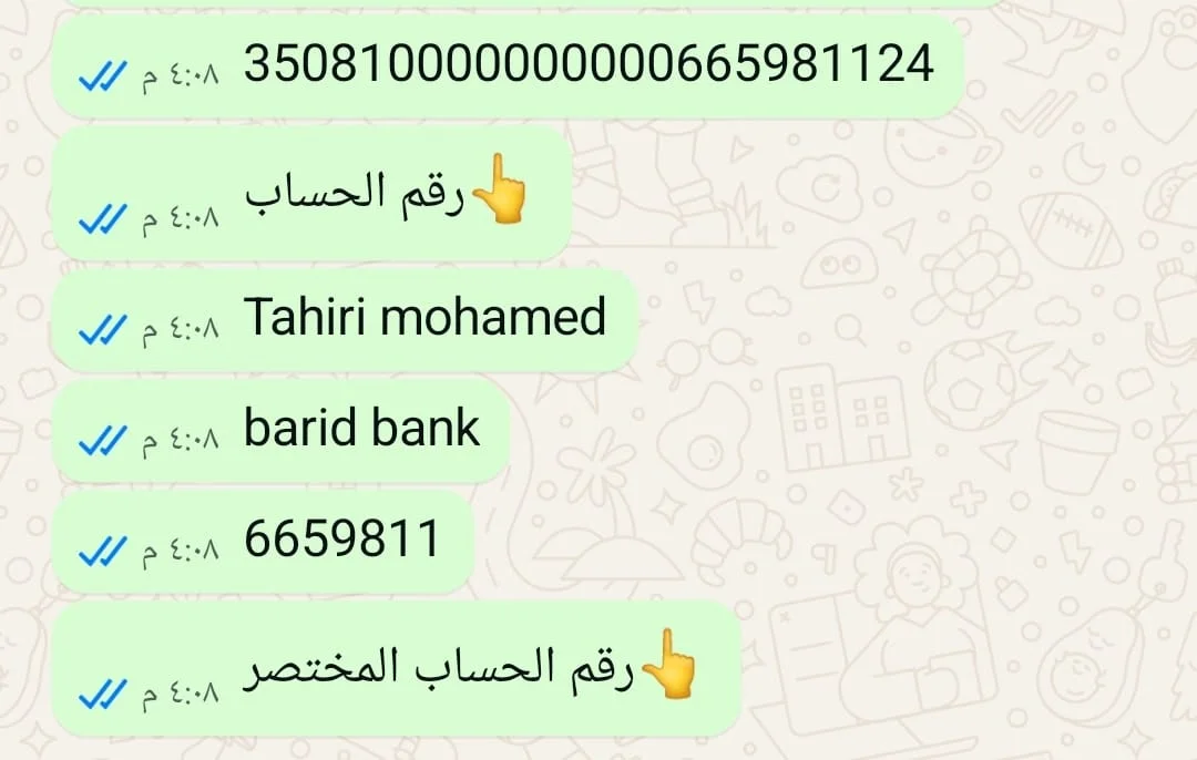 الدفع يكون عبر إرسال واجب التسجيل إلى رقم الحساب الآتي: